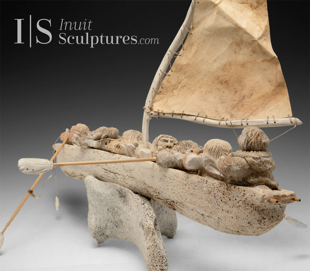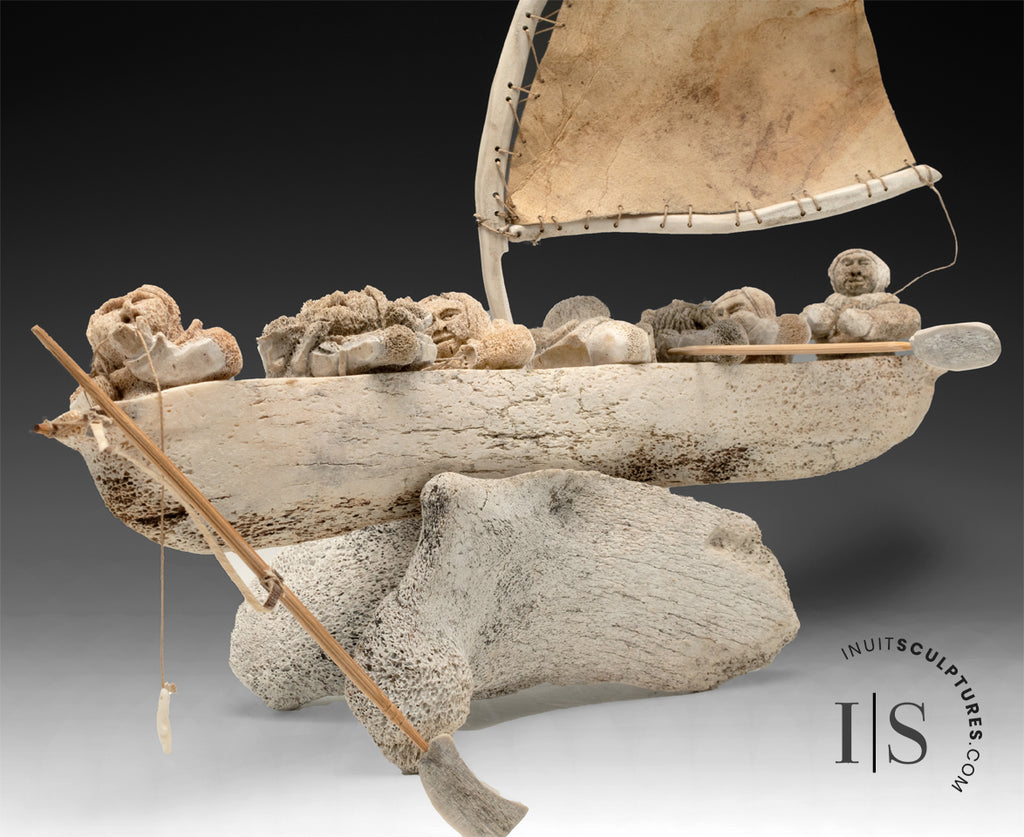 RESERVED 24" Masterpiece Whale Bone Umiak (Boat) by Bob Kussy & Goota Ashoona *AHOY!*