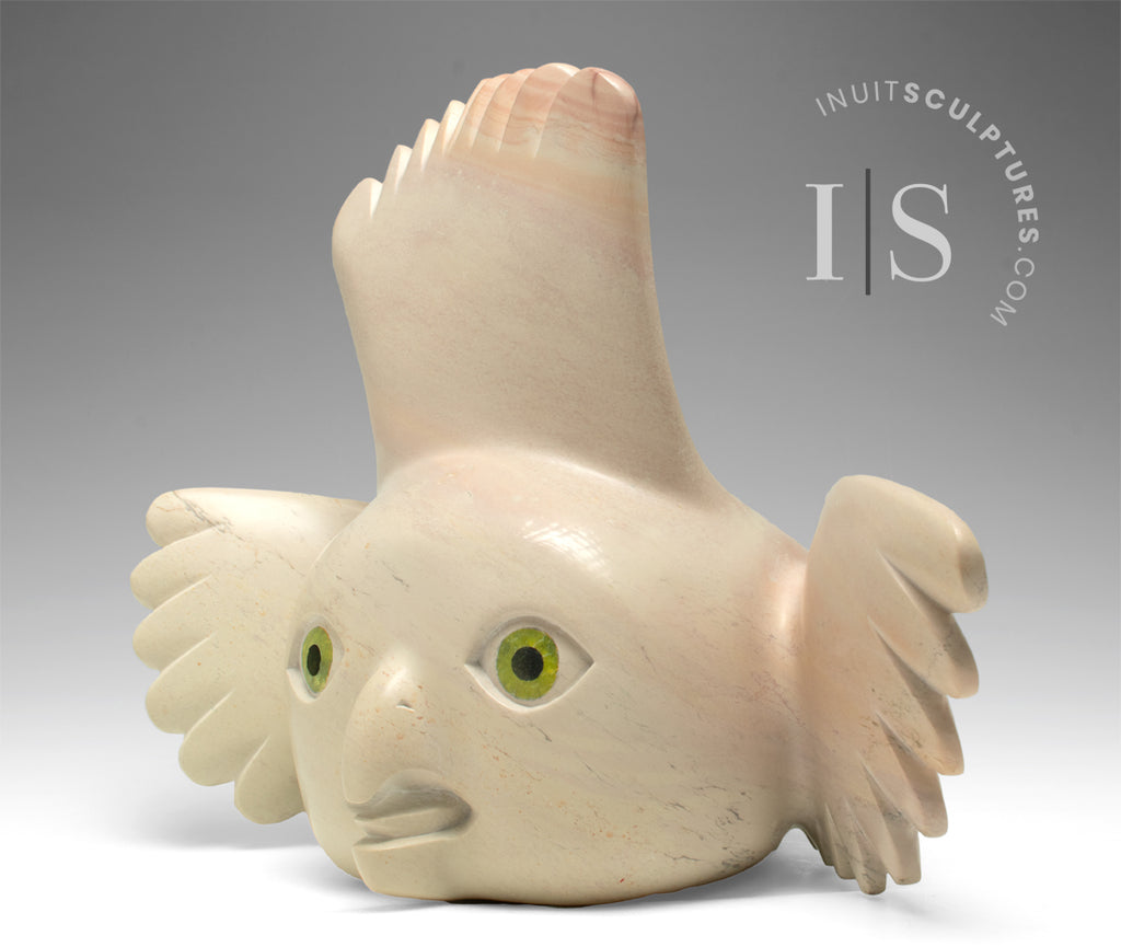 PEONY'S radiant green eyes compete for "Most Spectacular Eyes in an Inuit Carving".