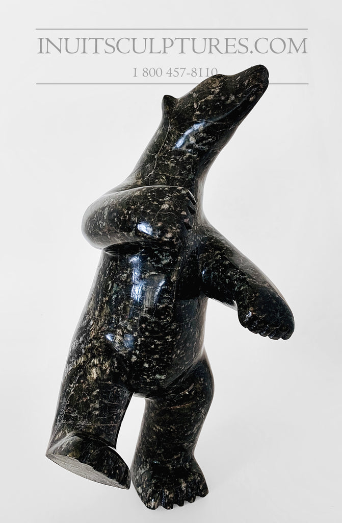 This is a generously sized medium Dancing Bear. To be specific, Kooyoo’s sculpture is a two way bear which means the bear can balance on either foot. This requires patience and talent on the part of the artist as this posture is difficult to achieve. (Kooyoo Peter is one of the few artists today that has this ability).