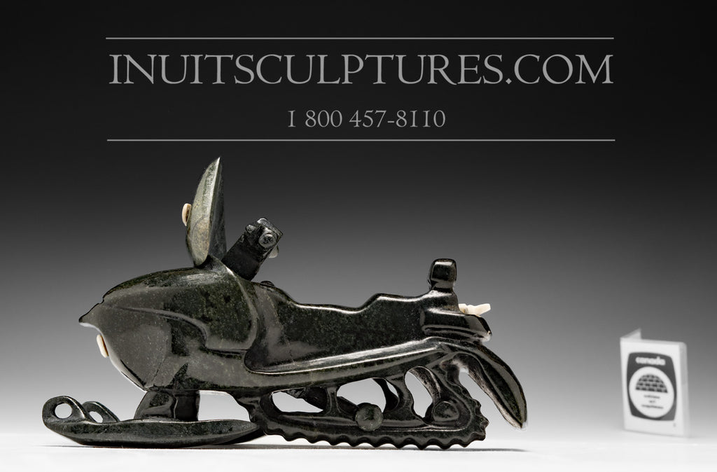 Influenced by Jamasie's amazing craftsmanship, Jupa Ishulutak wanted to create something that would show not only how the Inuit live today, but also something that would stay true to some of the Inuit traditions. The snowmobile and Qamutik are the main sources of transportation in the North. It is the lifeline that allow the Inuit to go hunting.