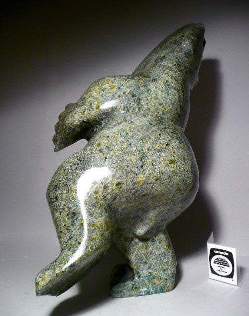 Joanie Ragee is a very well established artist and is recognized internationally for his dancing bears. His dancing bears are full of life with much movement. This is what attracts Inuit art enthusiasts to his works. Joanie Ragee prefers to carve using stone with the traditional green coloration. He expresses himself mostly by allowing his dancing bears to balance perfectly while dancing on one or both legs.