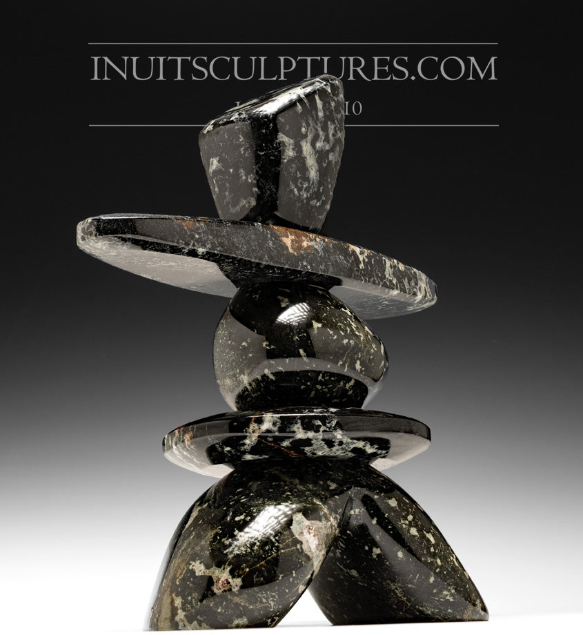 This is a gorgeously balanced inukshuk done in a striking serpentine stone. It has multiple colorations in the stone. The animation of Paul's Inukshuks are what really makes them stand out from all other Inukshuks.
