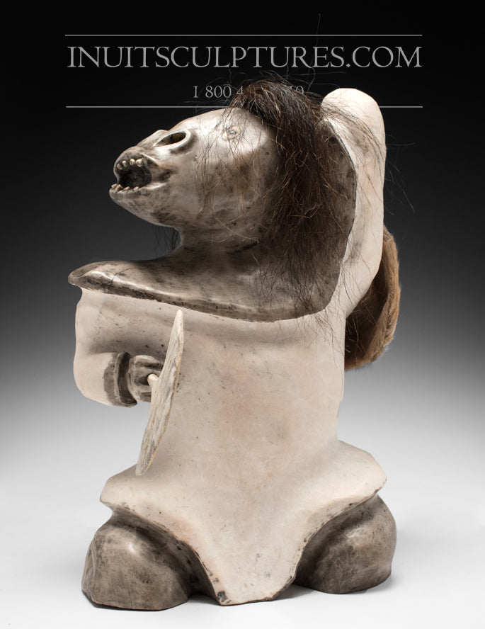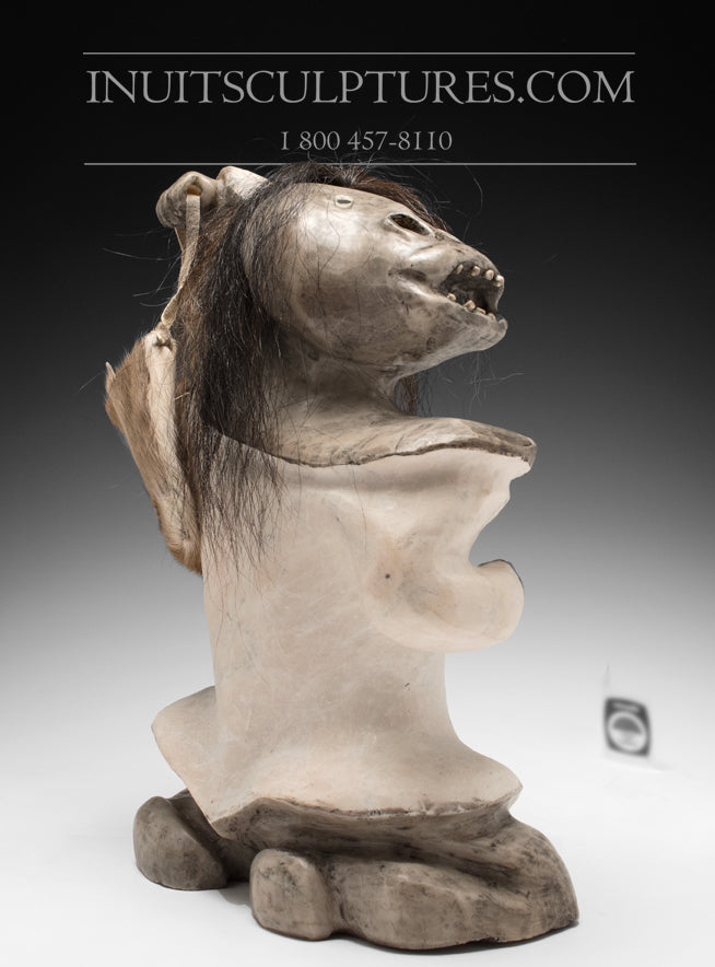 Puqiqnak’s carvings are cherished by collectors who appreciate these strange yet charismatic creatures. This particular piece will no doubt garnish the chronicles of Inuit art magazines and auction house catalogue covers in years to come.