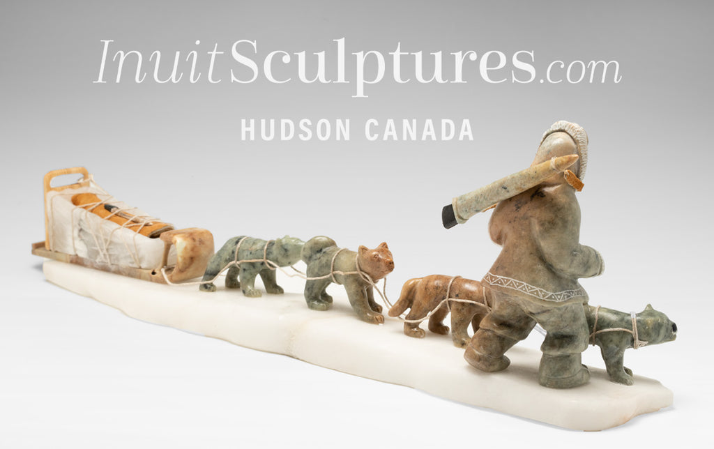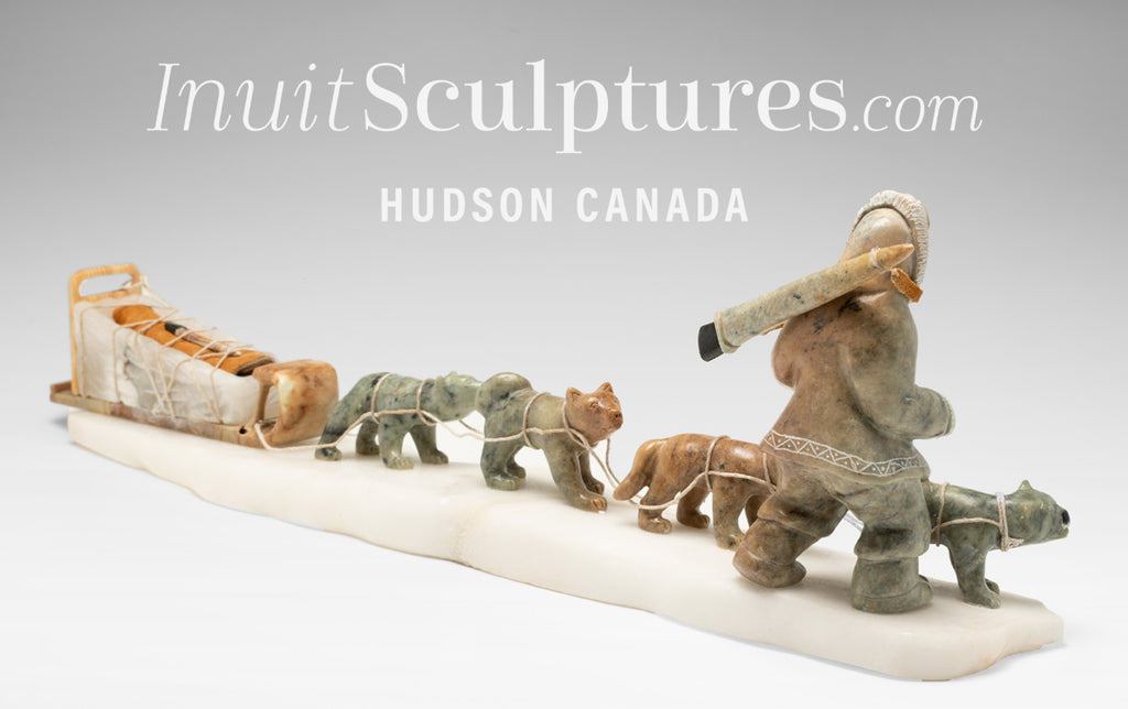 Poignant because the carving depicts the dependency the Inuk has on his dogs and his dogs on the Inuk.