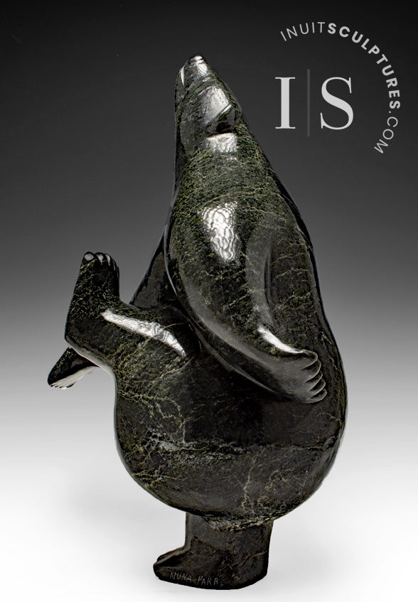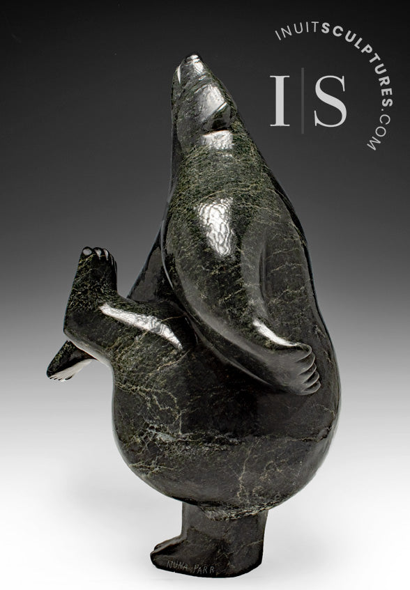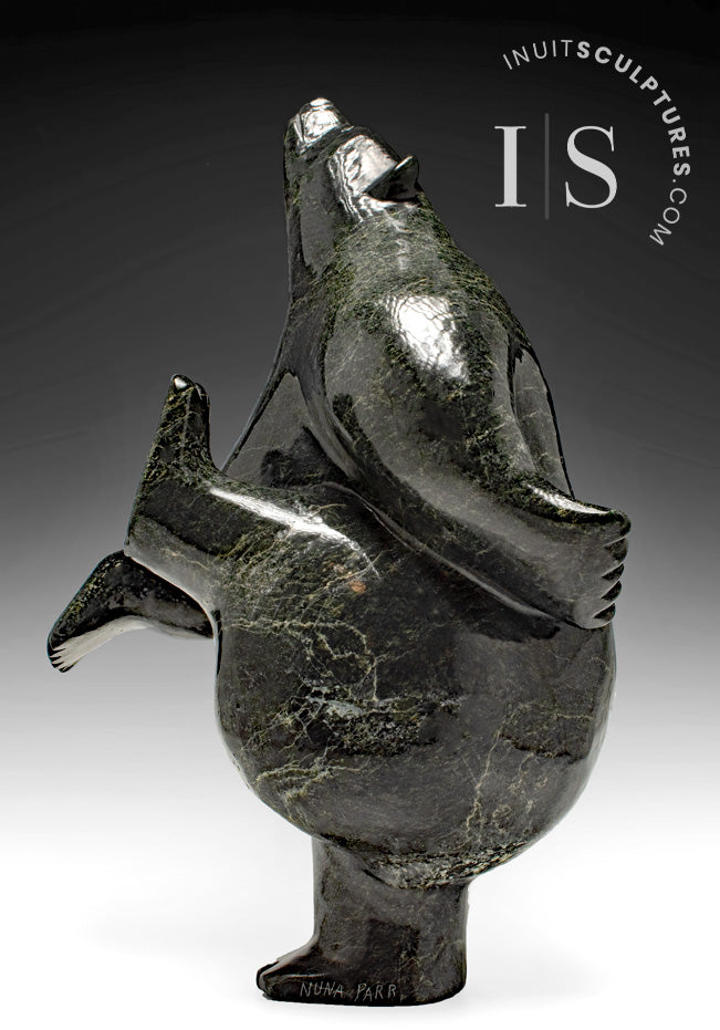 PROVENANCE December 2021: This acrobatic Dancing bear is the carving style that has made Nuna Parr the most famous Inuit artist in the world. -