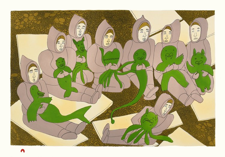 SHUVINAI ASHOONA 28. Caring for CreaturesLithograph Paper: BFK Rives White Printer: Nujalia Quvianaqtuliaq 45 x 65 cm