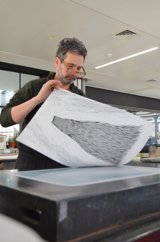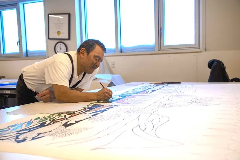 Based in Kinngait, Nunavut, Quvianaqtuk Pudlat worked with Alastair Clark, Head of Editions of Edinburgh Printmakers to produce a printed lithograph be sold in Scotland and Canada.
