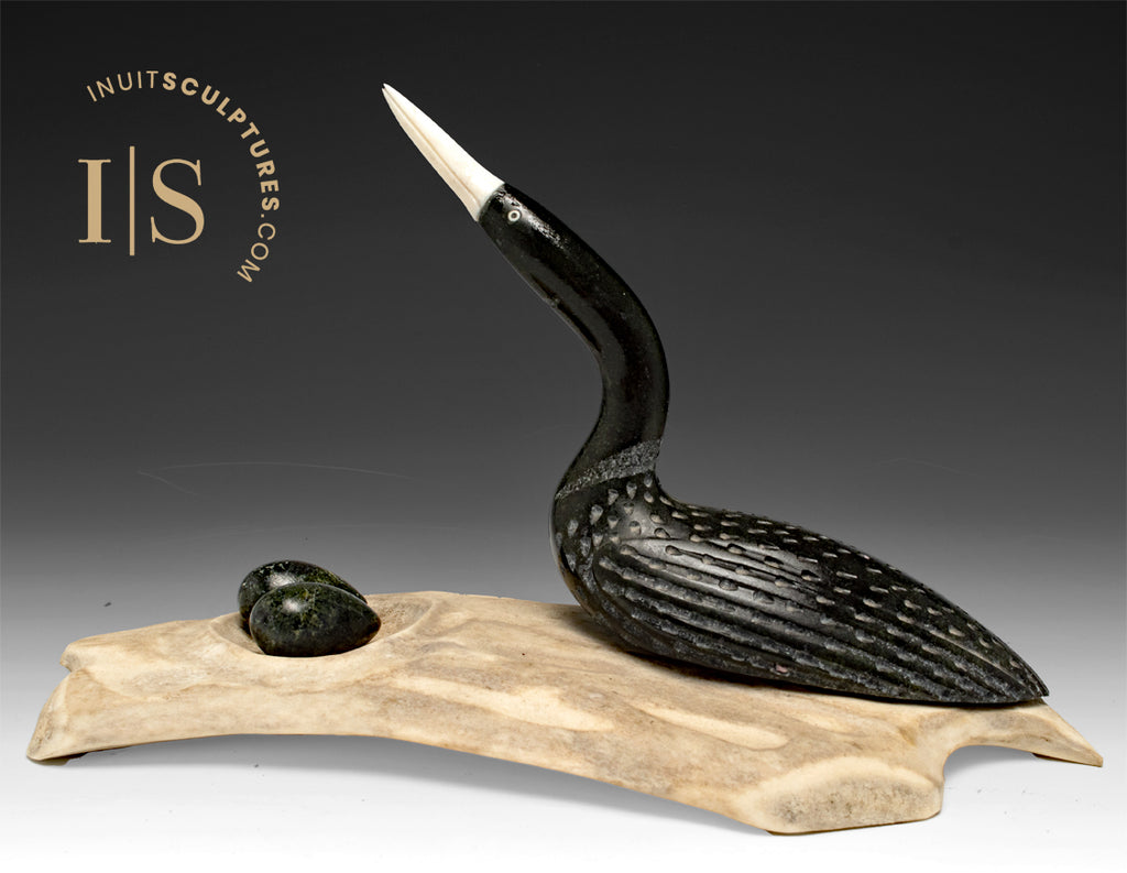 / VINTAGE 9" Loon Protecting Her Nest by Isaac Panigayak *Claire de Loon*