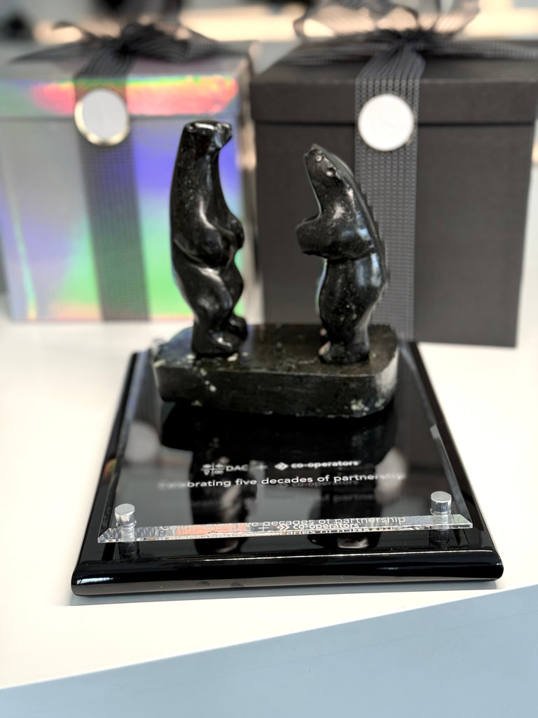 Placing your Inuit carving on a beautiful base, gives it stability, and allows you to immortalize the occasion with an inscription.