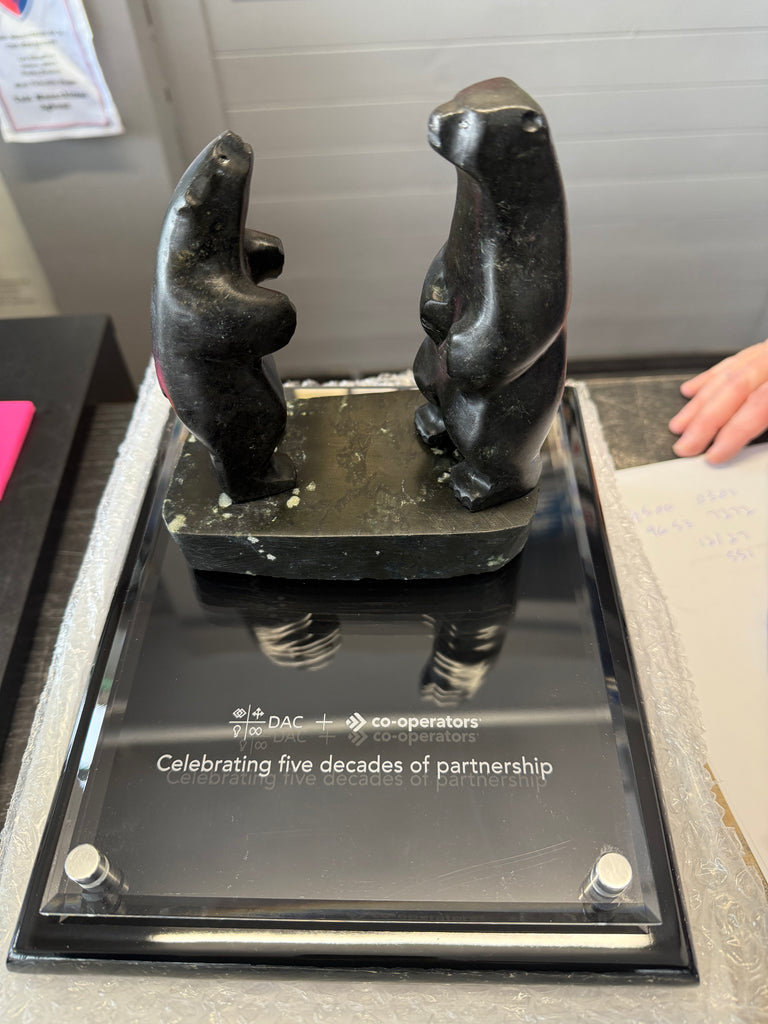 We recommend choosing a carving from Small Bears & Treasures for Under $1000, or Inukshuks, however, it can be from anywhere.