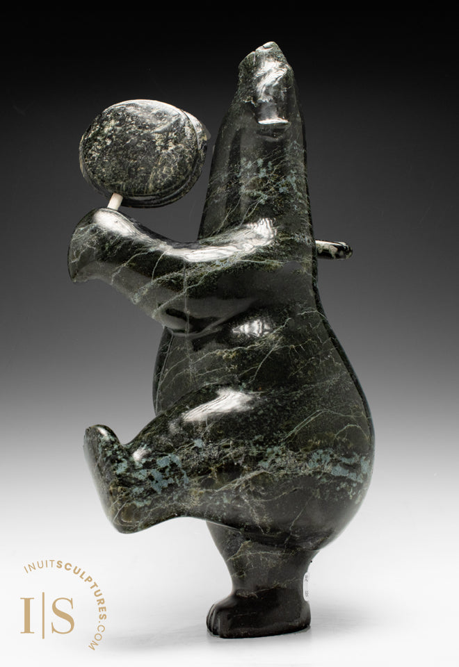 Inuit Art: Drum Dancing Bear with Inukshuk on a Drum