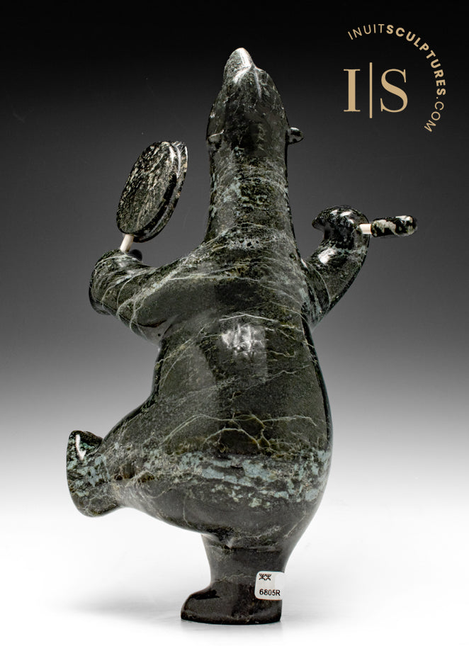 This rare and beautifully crafted 15" Drum Dancing Bear by Etidloie Adla is stunning.