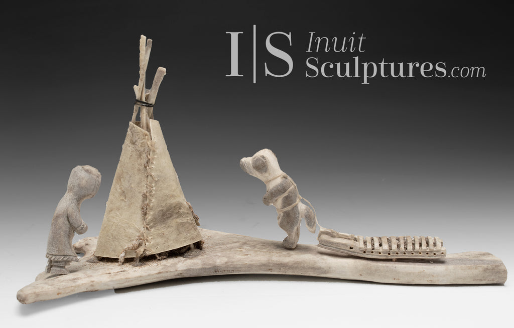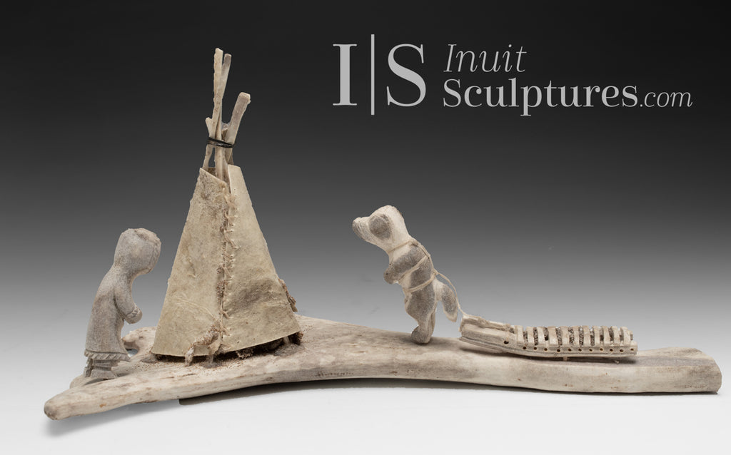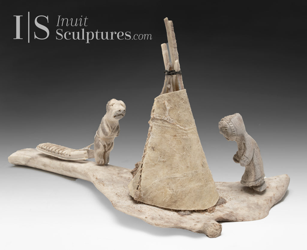 / 9" Camping Scene by Charlie Saviakjuk Jr. *Man's Best Friend*