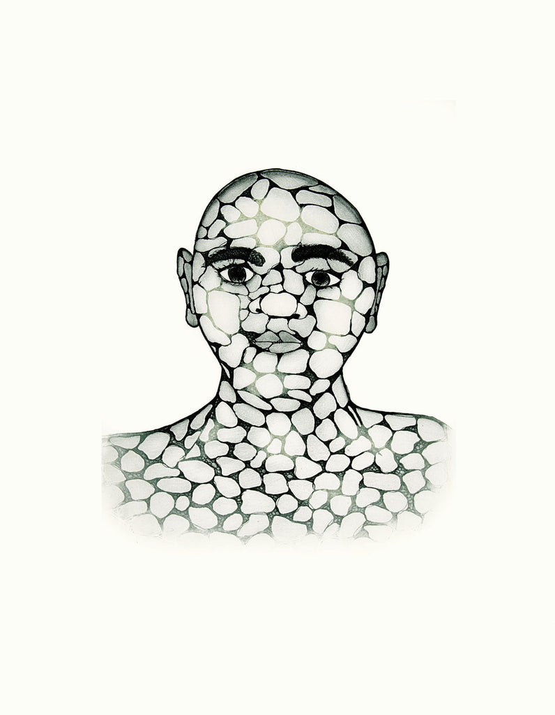 PADLOO SAMAYUALIEPebble ManEtching & AquatintPaper: Arches WhitePrinter: Studio PM60 x 47.5 cmReleased in the 2018 Cape Dorset Print collection