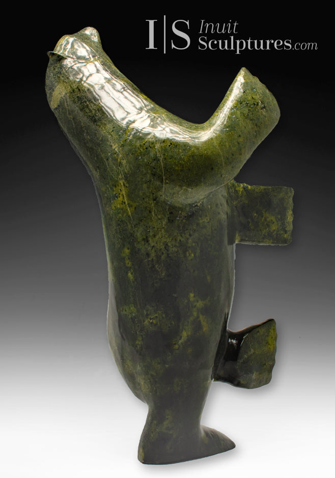 NOTE: Several years ago, Nuna suffered an injury to one of his arms which severely limited his carving. At that time, we were able to acquire a dancing bear which one of his relatives helped him carve by holding the stone. Happily, he recovered but the volume of his carvings has diminished. This is life. Carving stone is physically brutal.