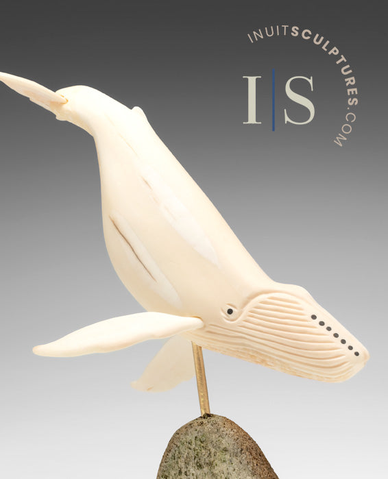 Harrison uses whale bone, baleen, and muskox horn to carve his magnificent whale sculptures.