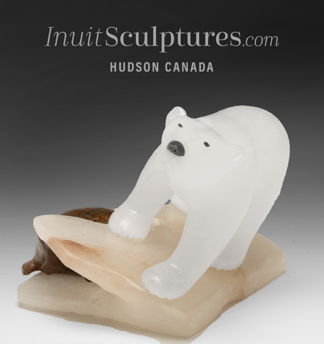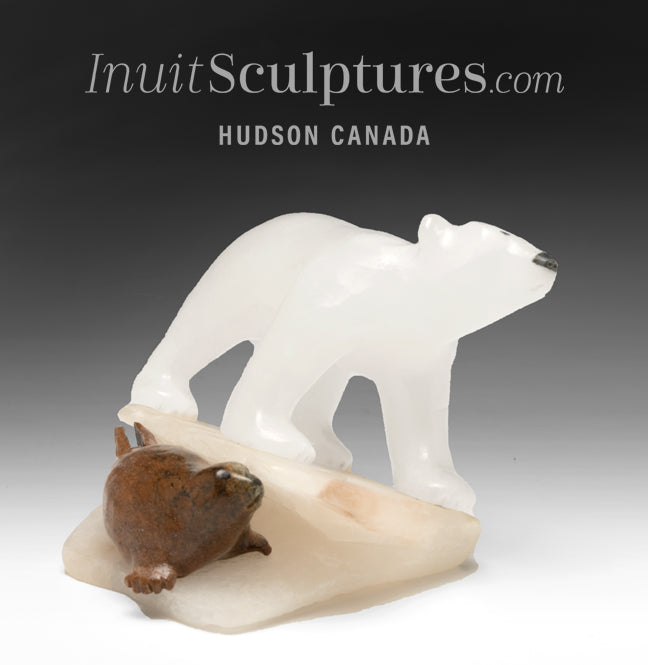 6" Young Polar Bear & Seal by Peter K. *Peek A Boo*