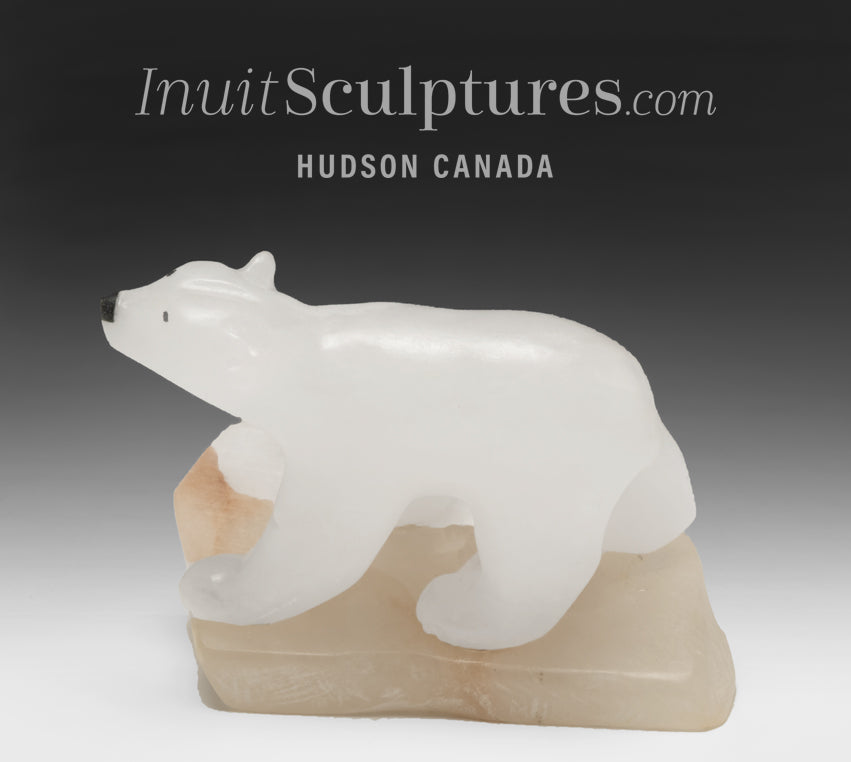 In this fascinating piece, the young polar bear is standing on a shelf of ice which is projected on an angle out of the Arctic Sea.