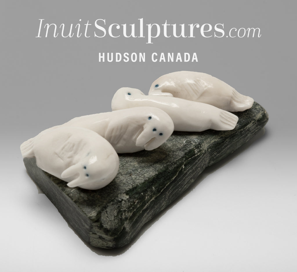 Did you know that in the early days of modern Inuit carving, because of the scarcity of medium and the high cost of shipping the pieces to the South, the carvings were often carved from ivory and were very tiny like these four adventurers!