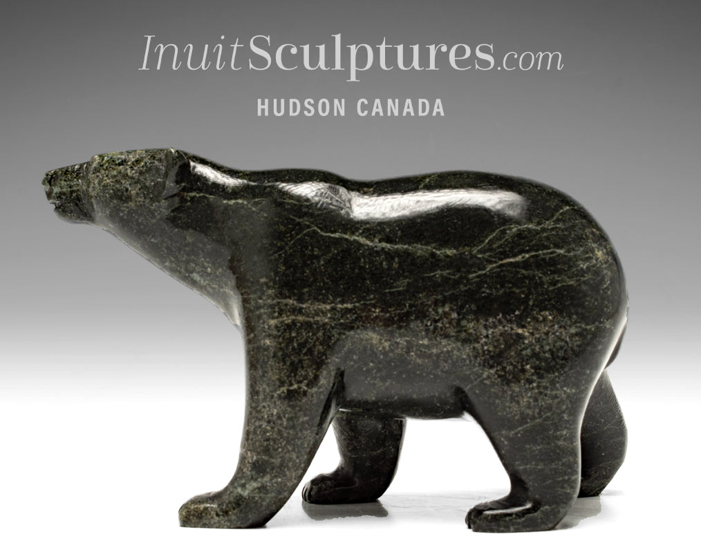 He is the quintessential black Inuit bear carving, jazzed up with a hint of thin green veining.