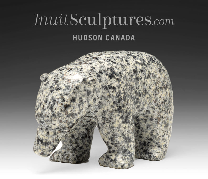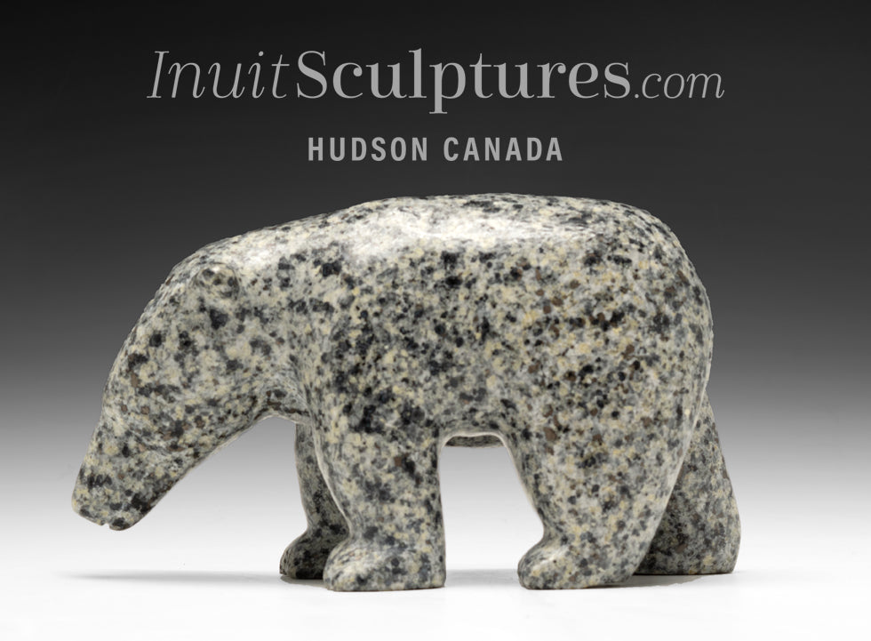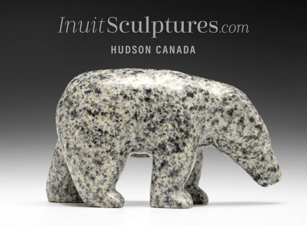 Luke's captivating Walking bear Mercy is carved from a rare warm gray and white speckled stone.