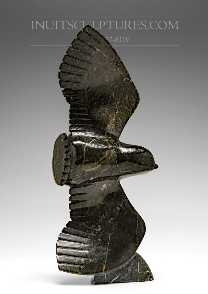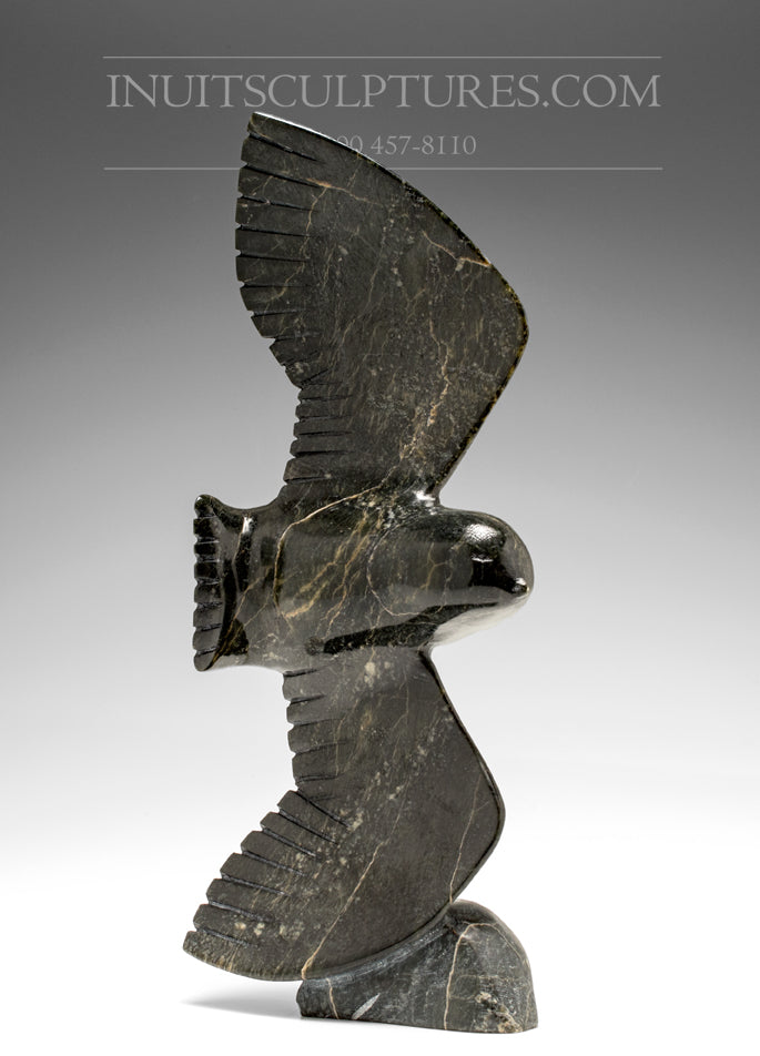 This is a stunning black Falcon carved by Inuit artist Luca Mikkigak (from Cape Dorset, Nunavut).