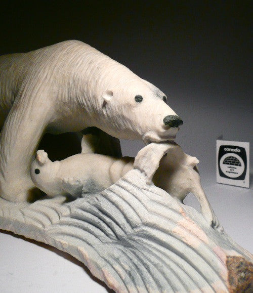 This is an absolutely gorgeous bear  from a very remote Inuit community called Igloolik. It is a community which is quite isolated from the other northern communities. Artists here have a unique style. They focus on creating sculptures to look as real as possible. The stone is rarely polished and they prefer a dry flat finish.