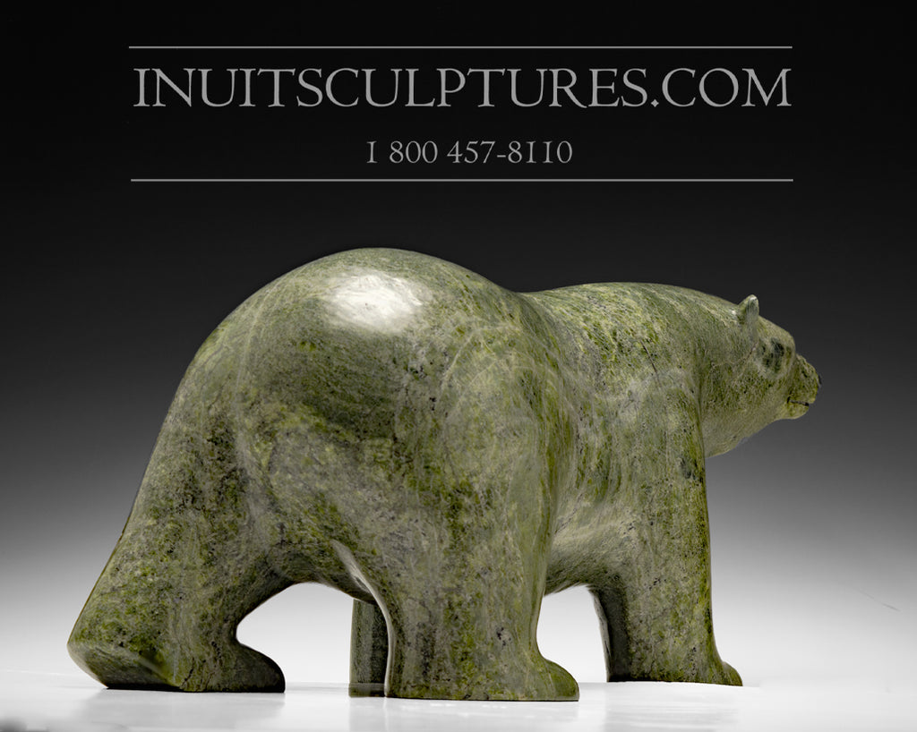 This monumental work is possibly unique in Adla's oevre in that it strays from his more medium sized format of dancing bears. Adla is just as famous for his depiction of dancing & walking bears as is the likes of other greats like Nuna Parr and Joe Kavik. He has created an impressive body of sculptures depicting human figures and other animals as well, but it is his affinity with the dancing bear that has captured the imagination of collectors.