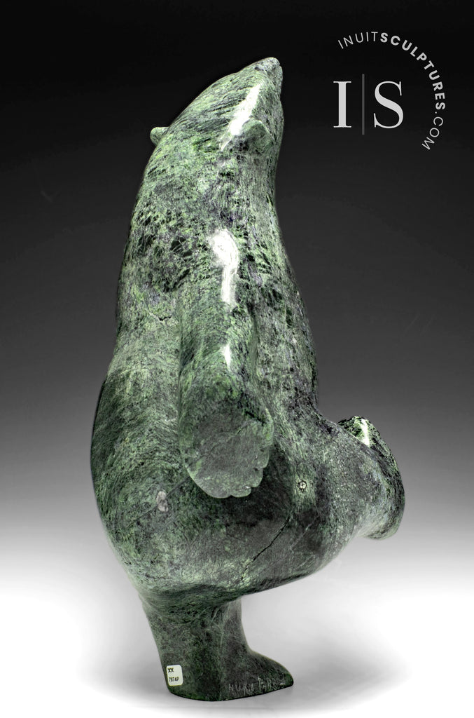 PROVENANCE August 2022: This acrobatic Dancing bear is the style of carving that has made Nuna Parr the most famous Inuit artist in the world.