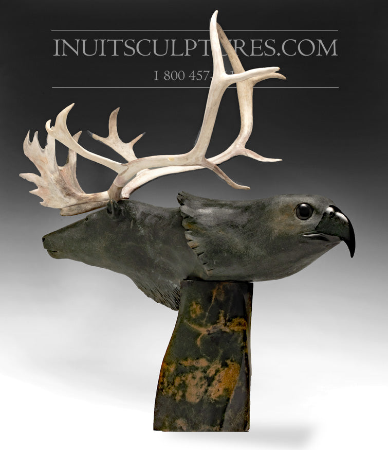 The black matte stone sanctions the transition between the caribou and the hawk. The two meld together to become one BUT still you see two separate entities. Is it even possible for a mammal and a bird to share such intimacy?