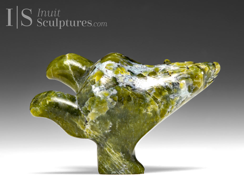 The lime green stone is complex. This is one of Sheutiapik's favourite colours for his bears.