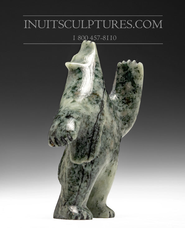 This particular dancing bear lays glorious claim to a calm yet raw savagery. He is the quintessential “Jade Green” bear BUT the dispersed horizontal pale veins within the stone imbues a sense of this bear’s permanent existence within the sands of time.