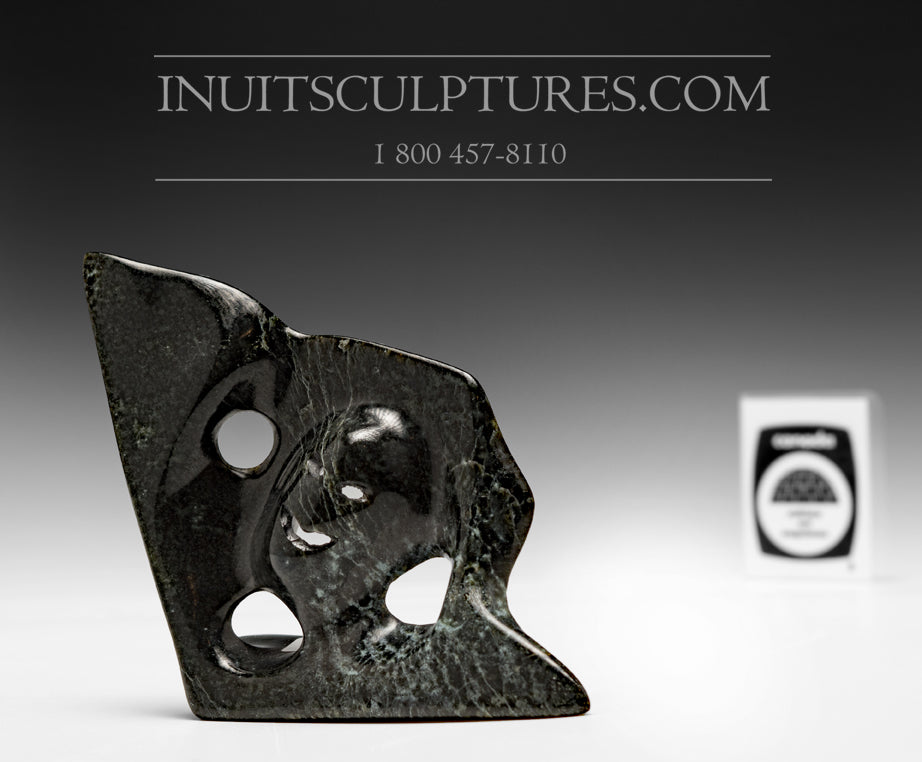 This is a beautiful rendition of spirit face. It is done in a dark black stone. The piece is timeless and will one day be featured in any auction catalogue or museum.