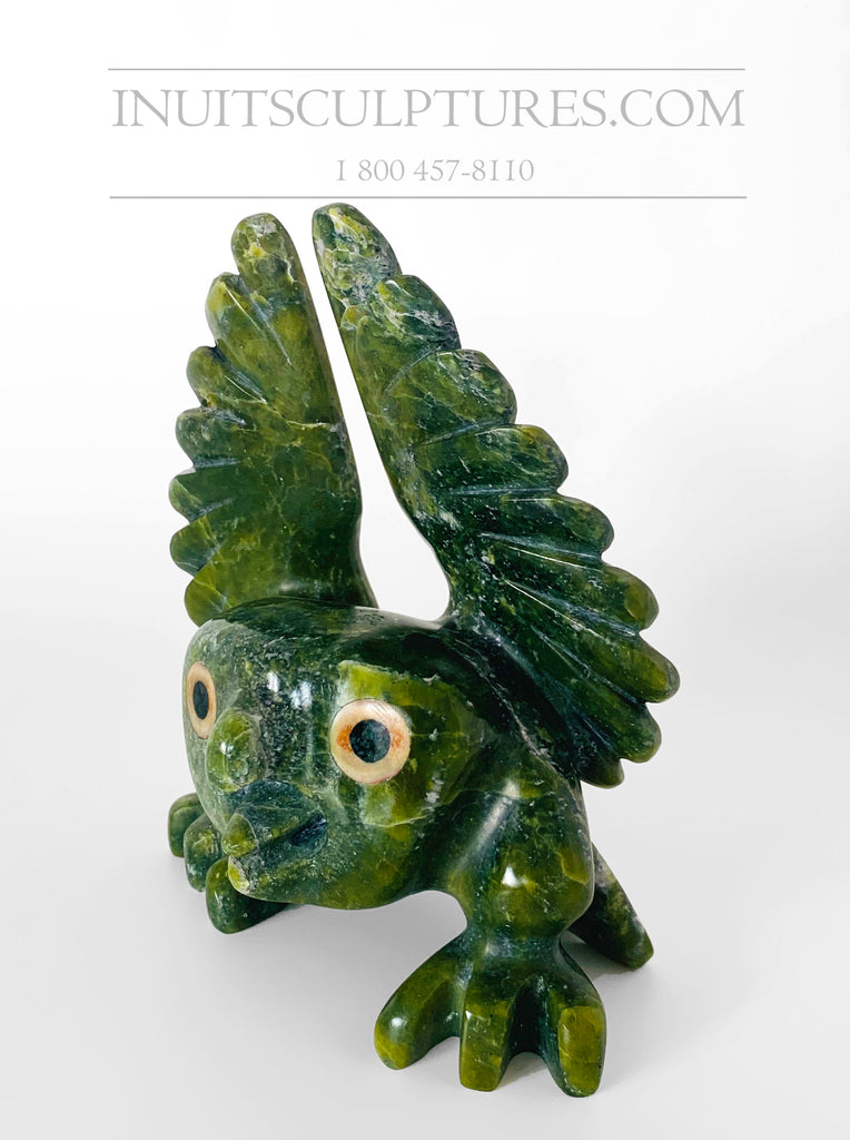 The apple green stone is my preferred choice for emitting energy and joy from a carving. I fully expected this carving to flap its wings and fly around the room when I released him from his box.