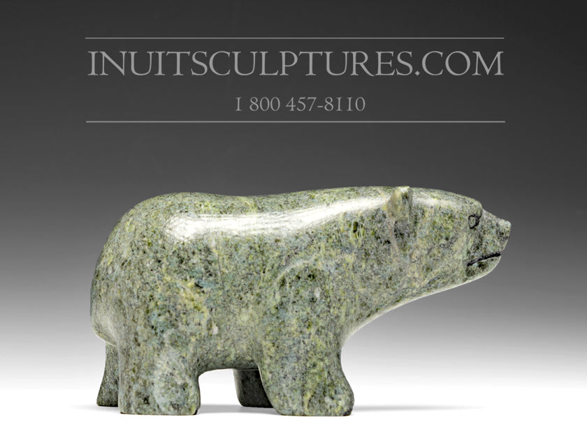 Shaa's fern green Walking bear pays heed to a more fundamental style of carving: one that does not attempt to replicate all the features of a bear.