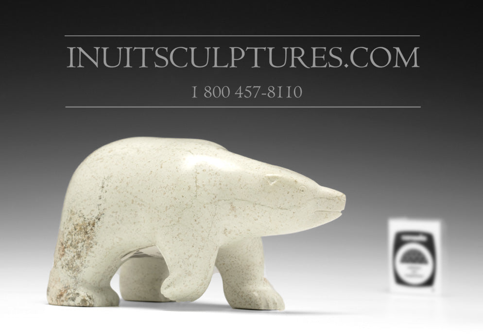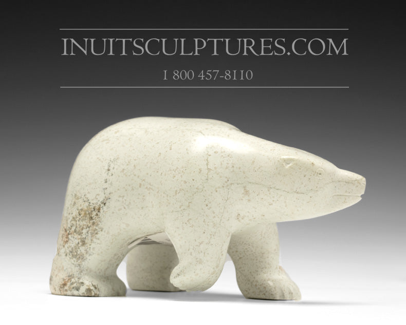 This is a gorgeous carving depicting a bear in its natural habitat. This bear has a beautiful milky cream colored stone. It is extremely smooth and refined.