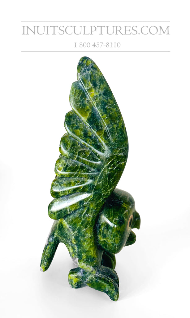 "Toonoo's parents, Josephee Sharky and Ragee Killiktee, were both carvers, though he credits his grandfather, master carver Kuppapik Ragee and his uncle Shorty Killiktee as influences. Toonoo started carving at ten, began to get serious at thirteen and first exhibited when he was just 17. He is regarded as one of the most exciting young carvers to emerge in the Arctic. His themes include fanciful and quite dramatic treatment of wildlife, particularly birds, and transformational works that are both powerful and humorous. His work is widely shown, and he was elected to the Royal Canadian Academy in 2003." *