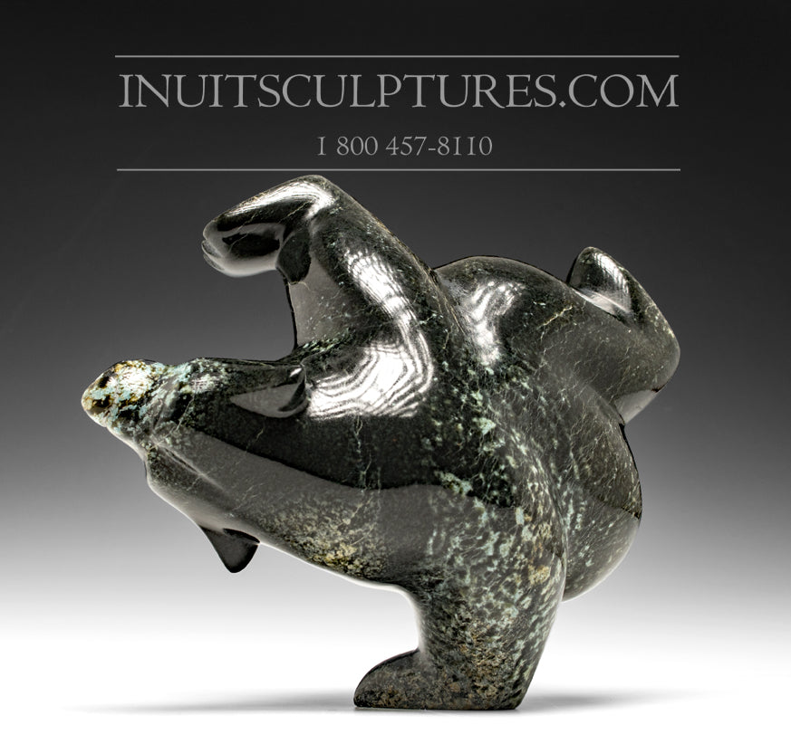 Ottokie Samayualie takes great care in choosing his stone. His carvings are made of the finest serpentine of varying green shades, and then smoothed and polished to best exhibit the lustre of the stone.