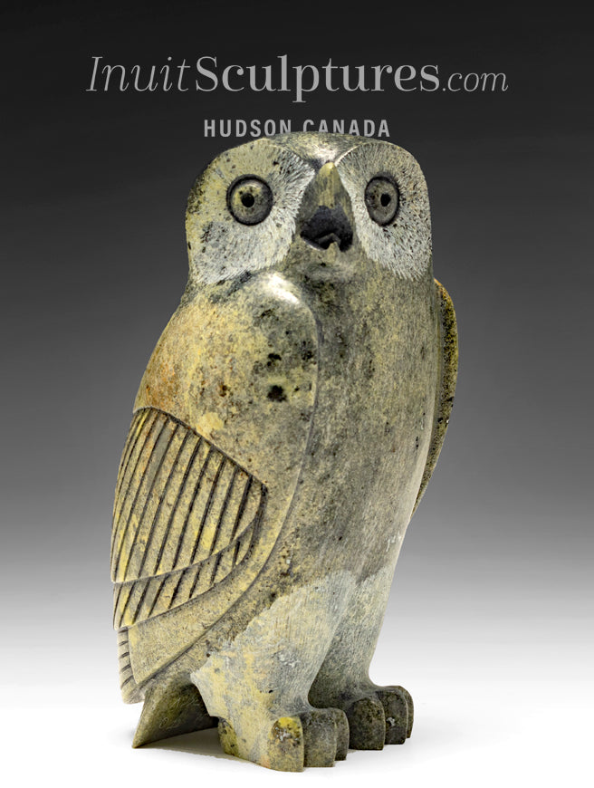 8" SIGNATURE Owl (rare colour stone) by Pits Qimirpik *Julius*