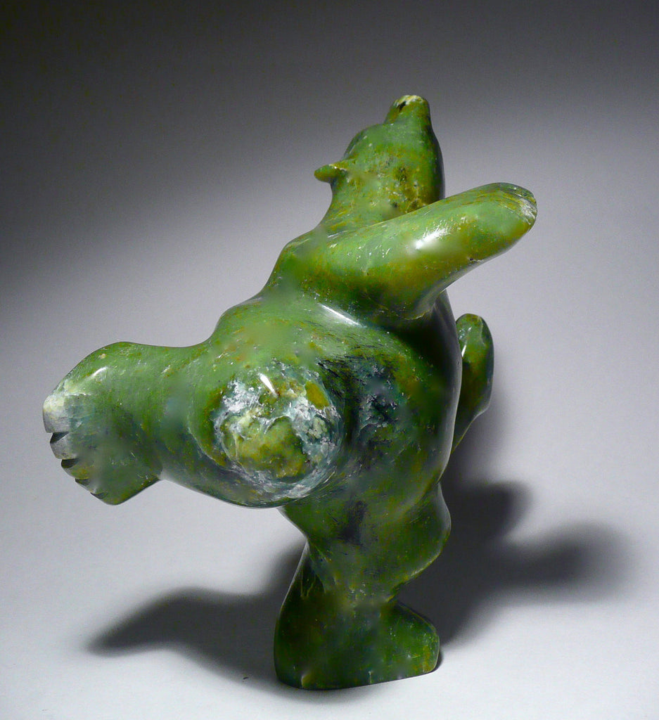 This is an electrifying and stunning dancing bear by Johnny Lee Pudlat from Cape Dorset, Nunavut. This is a perfect exemplification of Cape Dorset art.