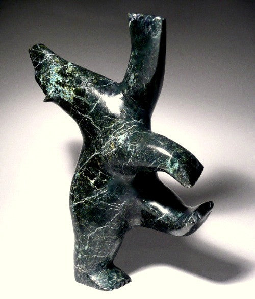 Noo Atsiaq was born in Iqaluit (Frobisher Bay), Nunavut and now lives and carves in Cape Dorset, the capital of Inuit art. His Parents are Alashua Atsiaq and Piulia Pudlalik Atsiaq. Noo has been carving since he was a young kid. He was initially taught by watching other carvers. His favorite subject is bears, dancing, diving and walking. Sculptures by Noo Atsiaq are well known and thought after in the Inuit art collectors world. He also occasionally carves people and caribou.