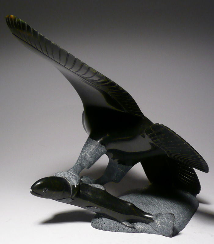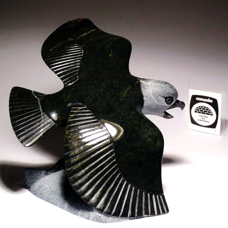 It is an extremely rare eagle by Canada's most world renowned Inuit artists - Pits Qimirpik. Pits Qimirpik has numerous prize winning pieces on an international scale. All of his birds sell for extremely high prices. His works can be found in Canada's national art collection in Ottawa.