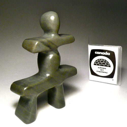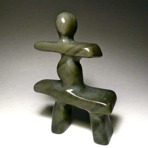 This is a beautiful deep green argillite based Inukshuk made from Sanikiluaq. The beautiful finish of this Inukshuk really captures the essence of Sanikiluaq stone with its beautiful waved grains riding against the surface.