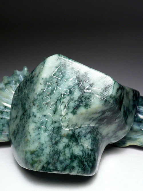 Mark Pitseolak is one of my favorite artists. I love his compositions and the glossy finish he adds to each of his carvings. His pieces are so smooth and slick, that they convey pure harmony mixed with sophistication. He prefers carving smaller figures as opposed to large ones. He enjoys directing more focus and detail into a smaller stone as it is much more manageable and scalable.