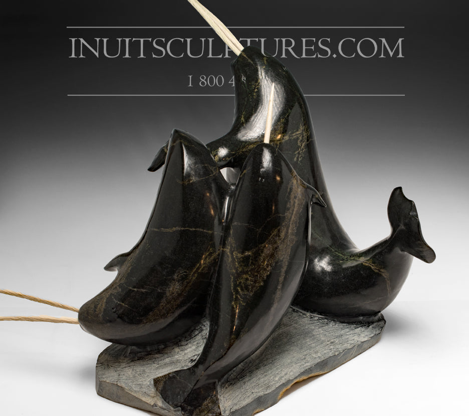 Masterpiece 22" 60 Lbs School of Double Tusk Narwhals by Jaco Ishulutak
