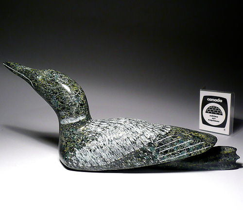 Etulu Etilodie is world famous for his loons. Any loons by him are unmistakably his own. The beautiful etch marks he puts on the feathers are extraordinary. The style of loons he makes all have a certain grace to them. They are eloquently refined with beautiful proportions and a smooth surface. Etulu's loons have been on the world centre stage and have been part of many international inuit exposes. This is why his loons are so sought after.